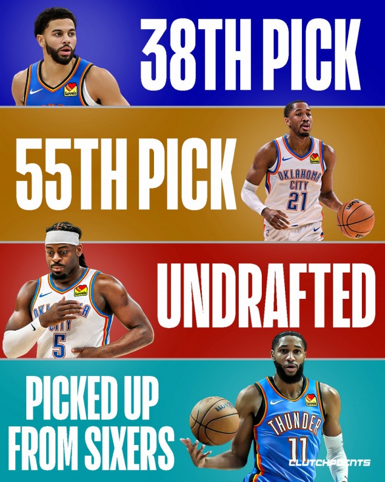 11月17日讯 美媒Clutchpoints晒出了几位在雷霆占据重要轮换位置球员进入NBA时的选秀顺位。