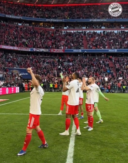 拜仁也在赛后进行了简单的庆祝仪式,球员们和主场球迷进行互动,庆祝成功卫冕。