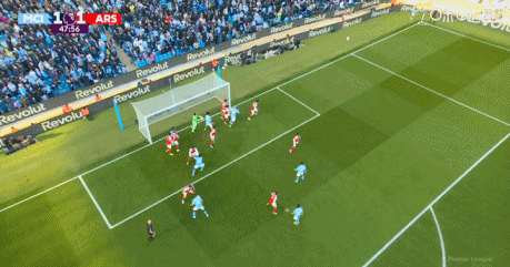 04月20日讯 曼城vs阿森纳第48分钟,曼城角球开出,拉亚挡了一下,胡桑诺夫打门被封堵,随后哈兰德中柱!