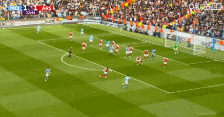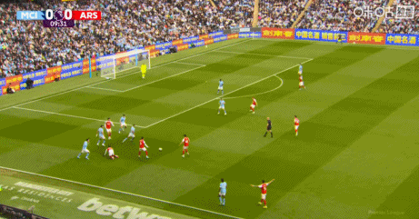 枪手火速扳平!多纳鲁马超巨失误送礼,哈弗茨破门!第18分钟,多纳鲁马后场停球停大,随后仓促大脚开球,哈弗茨迅速上抢将球挡进大门,曼城1-1阿森纳!↓