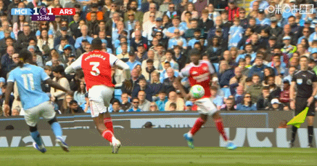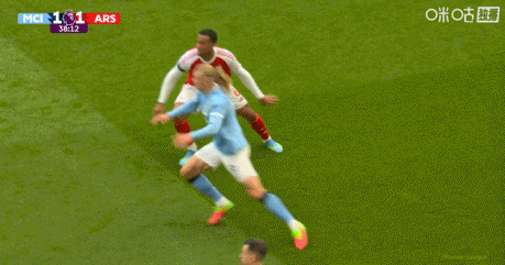 第38分钟,哈兰德和加布里埃尔贴身纠缠。↓