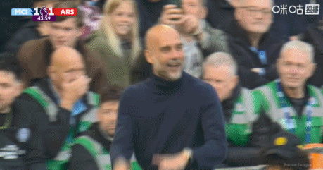 镜头给到瓜迪奥拉和阿尔特塔。↓